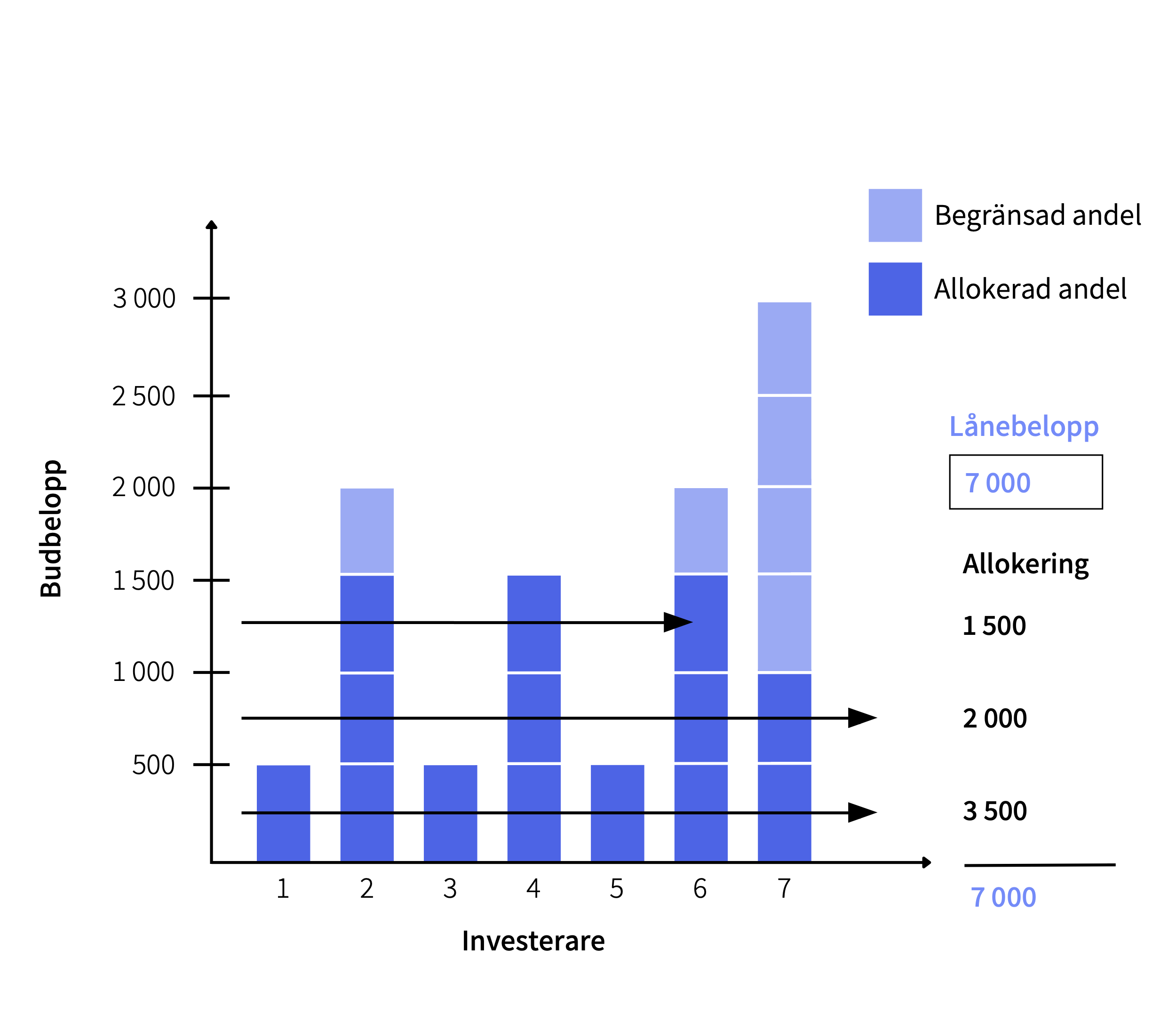 Om lånet blir övertecknat och det finns fler bud än låneandelar efter förhandsteckningen kommer de största buden att minskas. Systemet hanterar fördelningen av låneandelar automatiskt, och andelarna tilldelas nerifrån och upp.